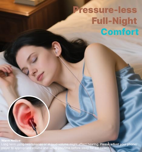 Hmusic Sleep Earphones, 30db Noise Isolation 3.5mm Wired Sleep Headphones, 2g Lightweight, Soft Silicone Flat/Thin Sleeping Earbuds for Side Sleeper,...