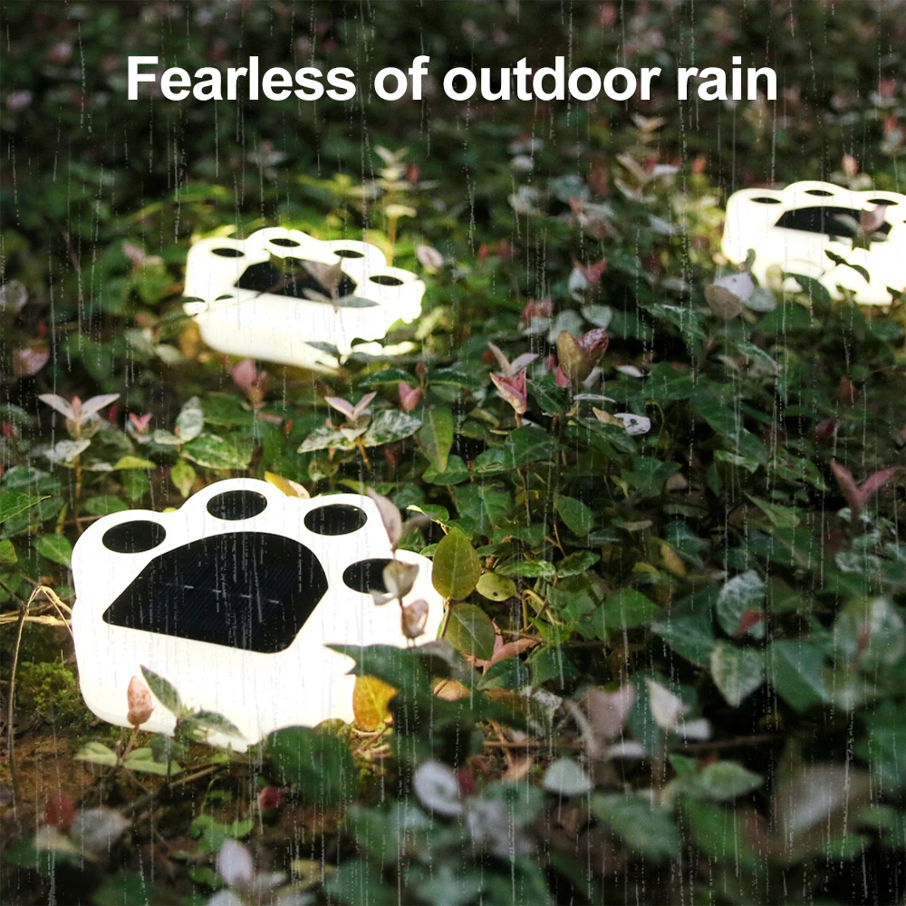 Crafted with waterproof materials, these LED Solar Garden Lights are built to withstand various outdoor conditions. Whether it’s a rainy evening or a sweltering sunny day, the lights stay durable and functional, ensuring continuous illumination for your outdoor decor. Their sturdy construction ensures they remain effective and attractive regardless of the weather. If you’re planning to decorate your garden, patio, or camping area, these waterproof paw print lamps are your dependable solution.