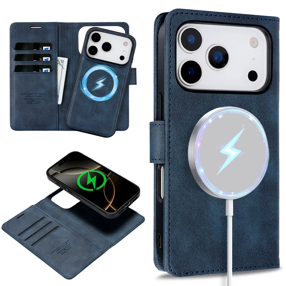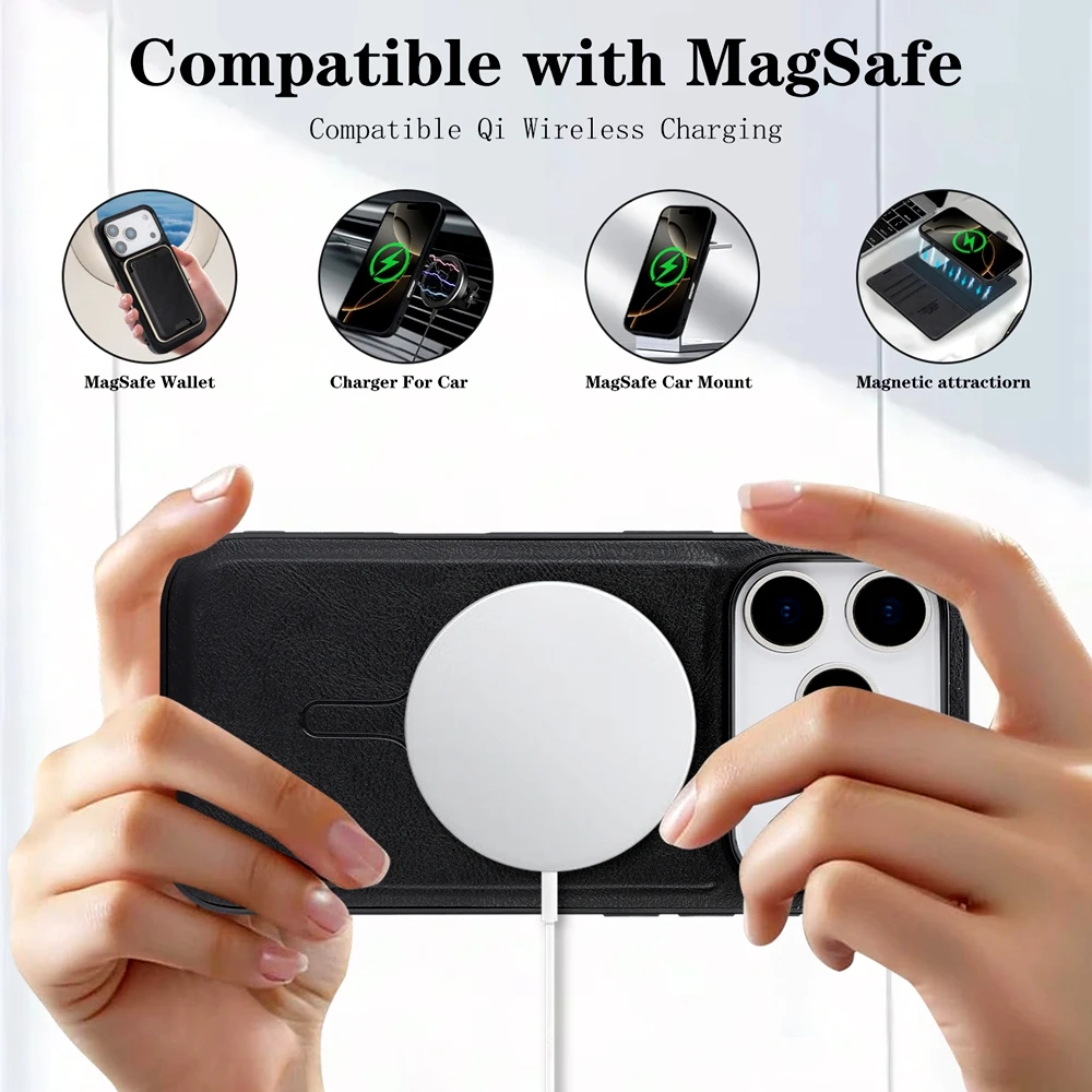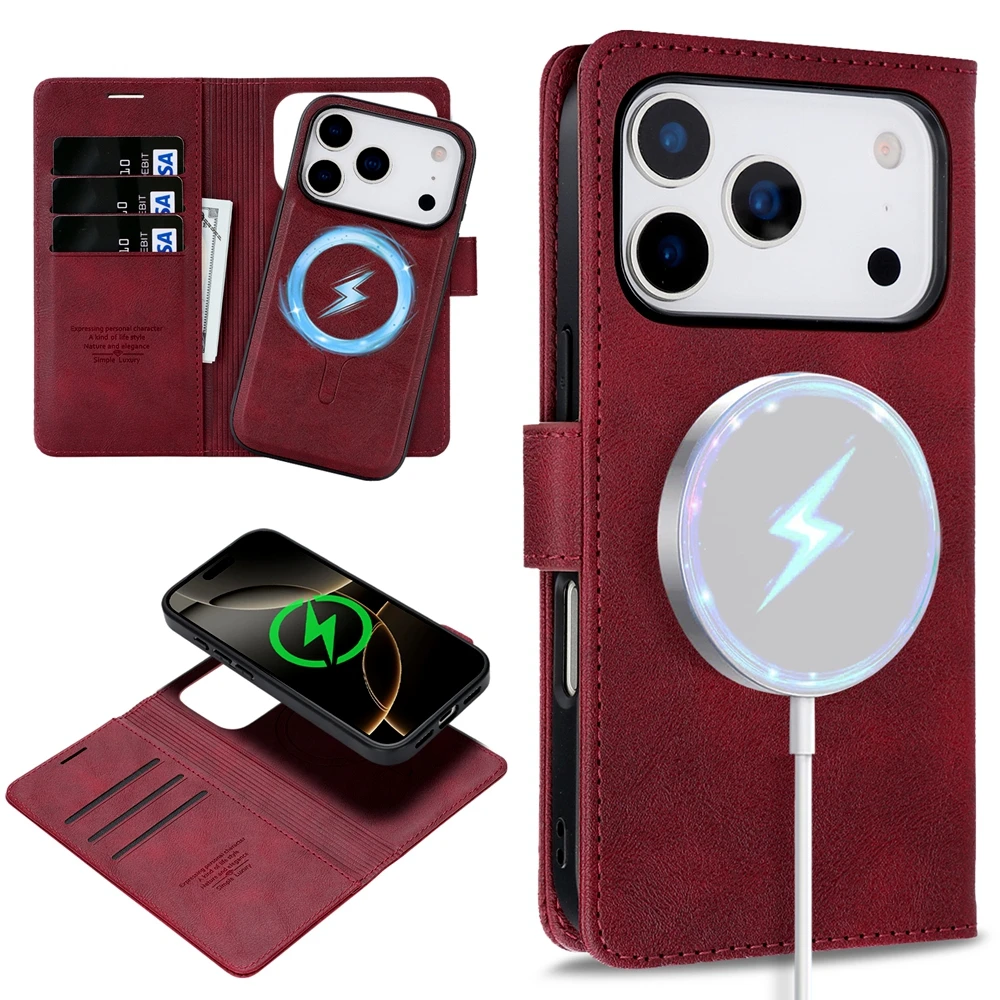 MagSafe leather Case for IPhone 17 Air 16 Promax 15 Plus 14 Pro Max 13 Pm 12 Magnetic Card Slots Wallet 2 in 1 Phone Cover
