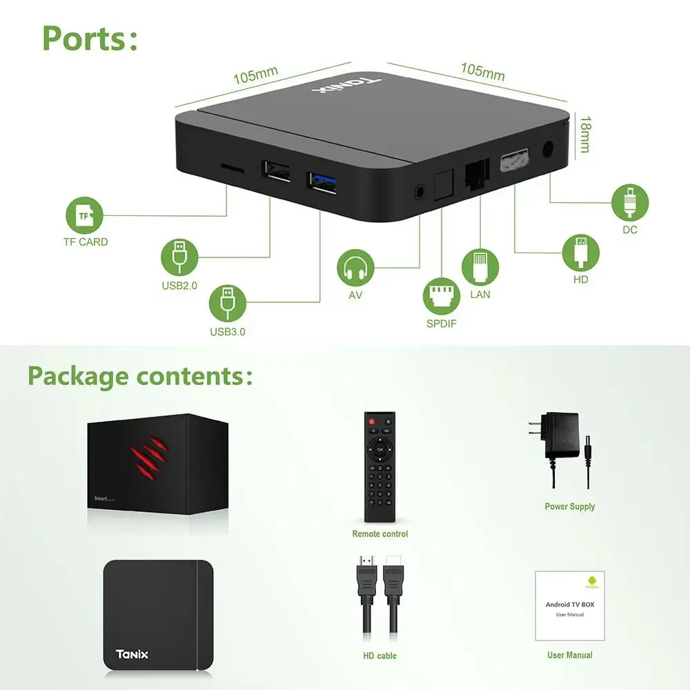 Stay connected with dual-band WiFi support (2.4G/5G), ensuring a fast and stable internet connection for HD streaming. This TV box also includes Bluetooth functionality, making it flexible and convenient for connecting to wireless accessories like speakers or remotes.